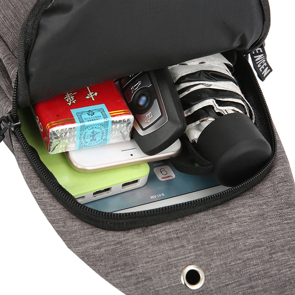 Технические характеристики: Пол: человек Тип узора: однотонный Тип изделия: Мужская нагрудная сумка Тип застежки: молния Тип изделия: Мужская нагрудная сумка Стиль: Мода Посылка включает в себя: 1 шт. Мужская нагрудная сумка USB-разъем позволяет вам выйти из дома более удобно, лучший для вас друг-друга Высококачественный холщовый материал, прочный Есть разница в 2-3 см