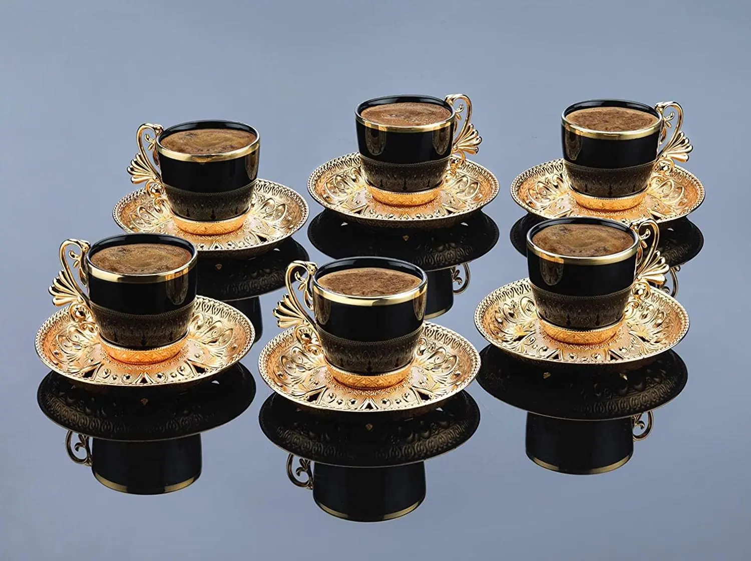 Набор из 6 кофейных османских арабских греческих марокканских золотых и черных кофейных чашек, кофейных кружек для эспрессо, Сервировочный набор, аутентичный роскошный подарок