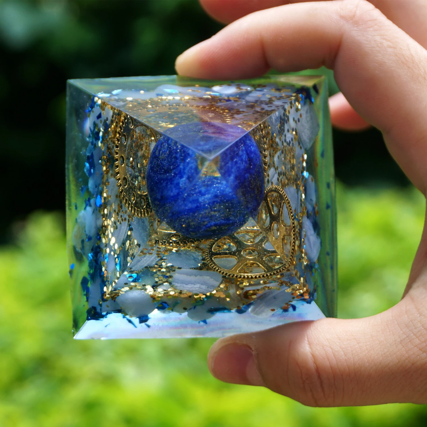 Материалы Лазуритовый Кристалл Shpere, синий халцедон, шестерня колеса, смола, синяя блестящая бумага, любовь Идеально подходит для работы в чакре, исцеления Рейки, кристаллических сеток, домашнего офисного декора, подарков и многого другого! Размер: 60 мм x 60 мм x 65 мм Посылка: 1 шт. оригинальная Пирамида с подарочной упаковочной коробкой. <Прочитайте ниже для получения более подробной информации о свойствах кристаллов> Лазурит: является особенно важным кристаллическим камнем из-за его близости к чакре третьего глаза. Он часто используется, чтобы помочь мост между своим умом и божественным. Это часто приводит к раскрытию более глубокого значения в своей жизни. Голубой халцедон-это изящный кристалл, тонкий и мистический, крутой и беззвучный, не теряющий эфира, но прочный. Он имеет привлекательный, мягкий синий оттенок и почти незаметное движение в камне, что вызывает тишину молчаливого почтения. Это успокаивает и говорит о духе и доверии. Примечание: Потому что это изделие ручной работы, а кристаллы и камни отличаются друг от друга, поэтому это нормально, что выглядит по-разному. Но разница делает каждую пирамиду уникальной. Пирамида из оргонитовых кристаллов, изготовленная из оргонитовых металлов и различных природных кристаллов из разных частей мира. Мощная вибрационная энергия генерируется, когда природные кристаллы чакры реагируют с энергией Orgone, которые приносят позитив всем вокруг.
