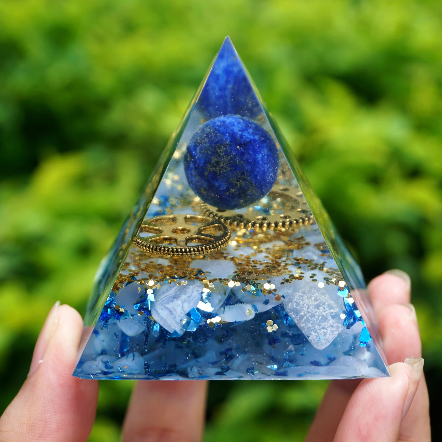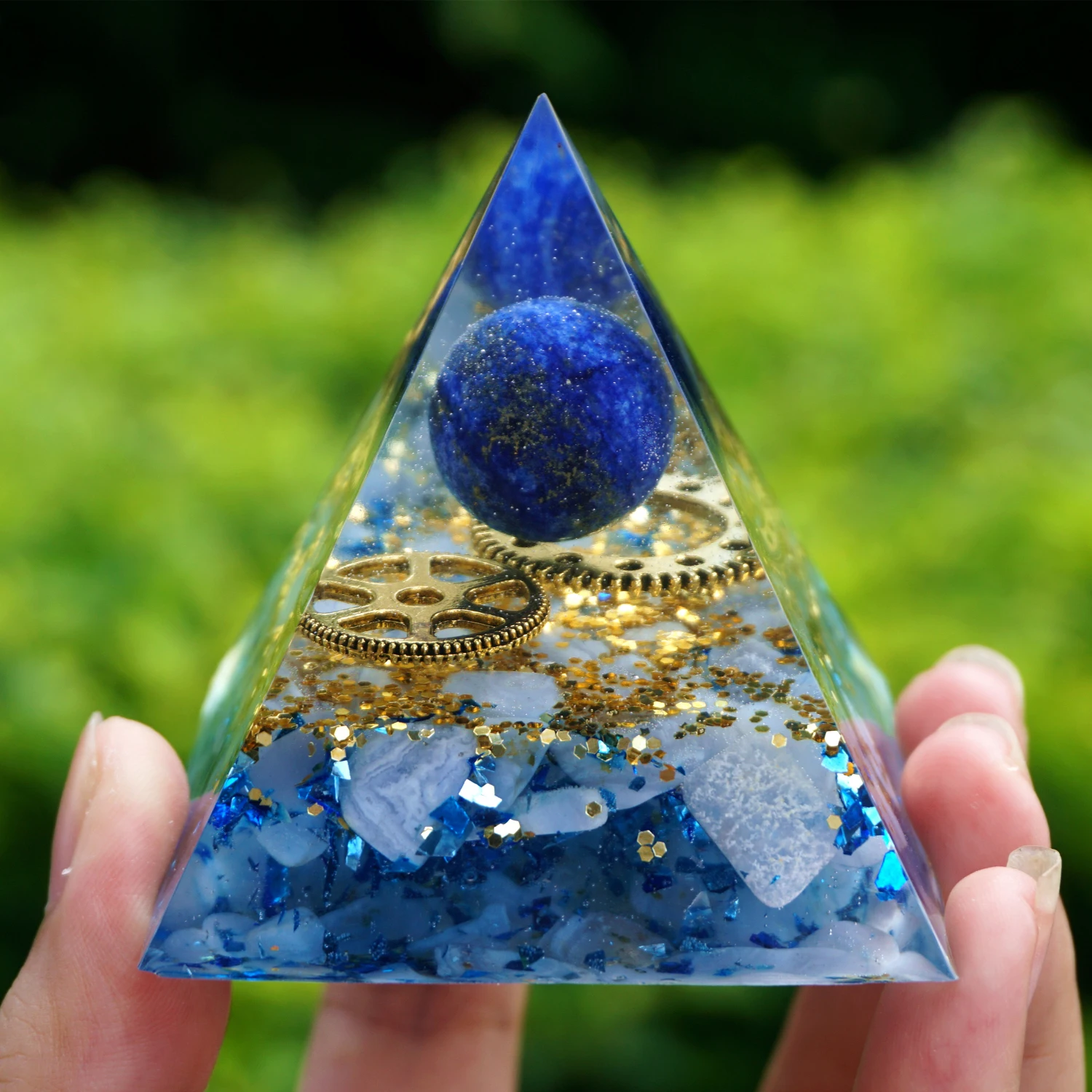 Оргонит Пирамида Лазурит кристалл Shpere с голубой халцедон медной энергии для исцеления чакр с помощью рейки Orgone Пирамида Медитация