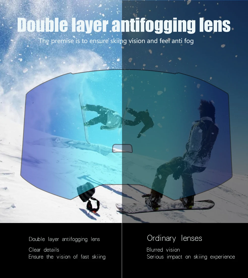 Материалы Премиум-качества-Очки для сноуборда обладают высокой четкостью и защитой от запотевания в сочетании с экологичными линзами из поликарбоната, которые имеют два слоя, чтобы уменьшить блики и защитить ваши глаза от вредных УФ-лучей.