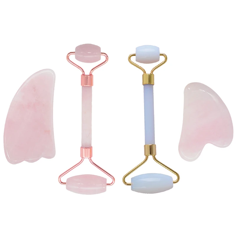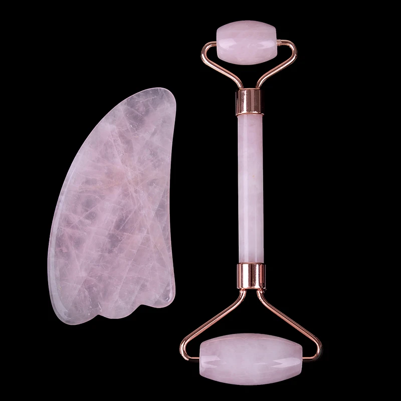 Натуральный розовый кварцевый кристалл с камнем гуаша роликовый массажер для лица и шеи инструменты для массажа лица