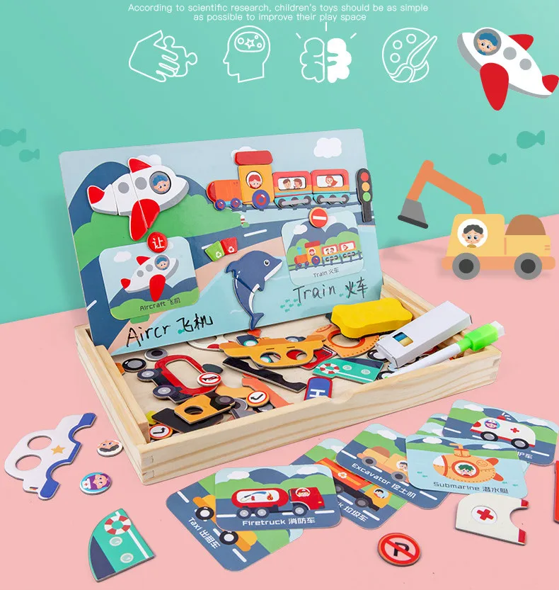 -Двусторонняя доска для рисования, одна сторона может быть паззлом, другая сторона может писать.