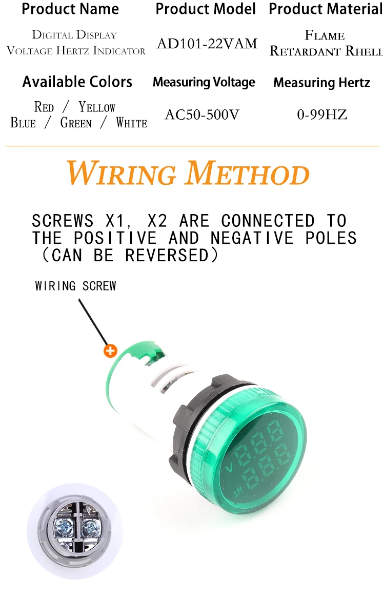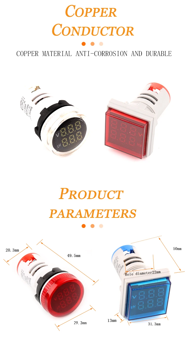 22 мм квадратный круглый переменный ток 50-500 в 0-99 Гц цифровой дисплей Напряжение Герц метр частота напряжение тестер Измеритель Индикатор сигнальный светильник