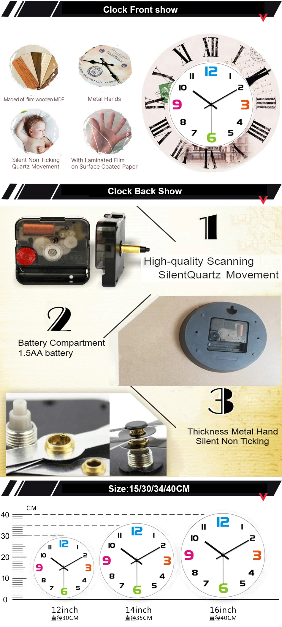 Это аналоговые настенные часы в стиле ретро, изготовленные из пленочного деревянного МДФ, без рамки или стеклянного покрытия. Эти часы украсят и осветят Декор вашей комнаты: современные и классические настенные часы отлично подходят для дома, кухни, столовой, гостиной, спальни, ванной комнаты, игровой комнаты, кабинета, компьютерной комнаты, класс, общежитие, библиотека, работа, конференц-зал, больница, кофейня и т. Д. За часами есть Пластиковый корпус для батарей. Эти винтажные настенные часы могут стать хорошим подарком для дома, свадеб и общественных мероприятий.