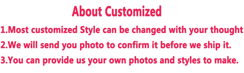 1. Dresses does not include any accessaries such as veils, gloves, petticoat inside and so on. Bidding is only for the dress! If you want accessaries, please contact us! 2. Any changes of Size/Color/Special Request are not acceptable after order placed exceeds 24 hours. 3. If you want to cancel the order: We accept full refund within 24 hours after you placing the order; there is just 50% partial refund after you place the order more than 24 hours(the 50% is the cost of our material). 4. We Promise Shipping Dress within 10-15 days(not big order), usually shipped by Aliexress standard shipping way and this is free. Delivery Time: 15-30 working days to major destinations, not remote countries. If you need urgent, please contact us to ship by fast shipping(like DHL,Fedex...), but this need you pay extra fee. otherwise we will insist shipping by post air mail.