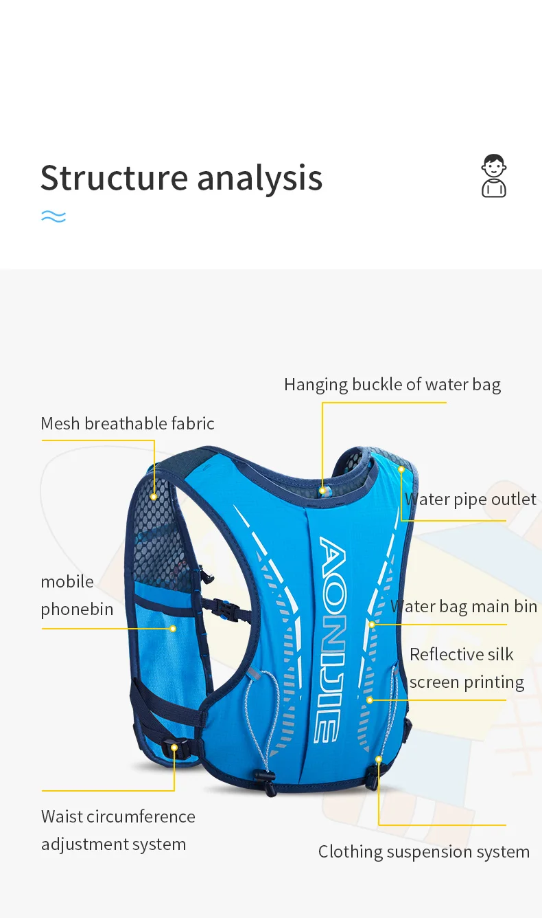 AONIJIE Children's cross-country backpack: Lightweight, breathable, bonding Small body, and large capacity, Pay attention to off-road safety Double drinking water plan Health campaign, easily replenishes water Large mesh ventilating design, farewell to sweat and wet Cute drawing, let the child grow up happily