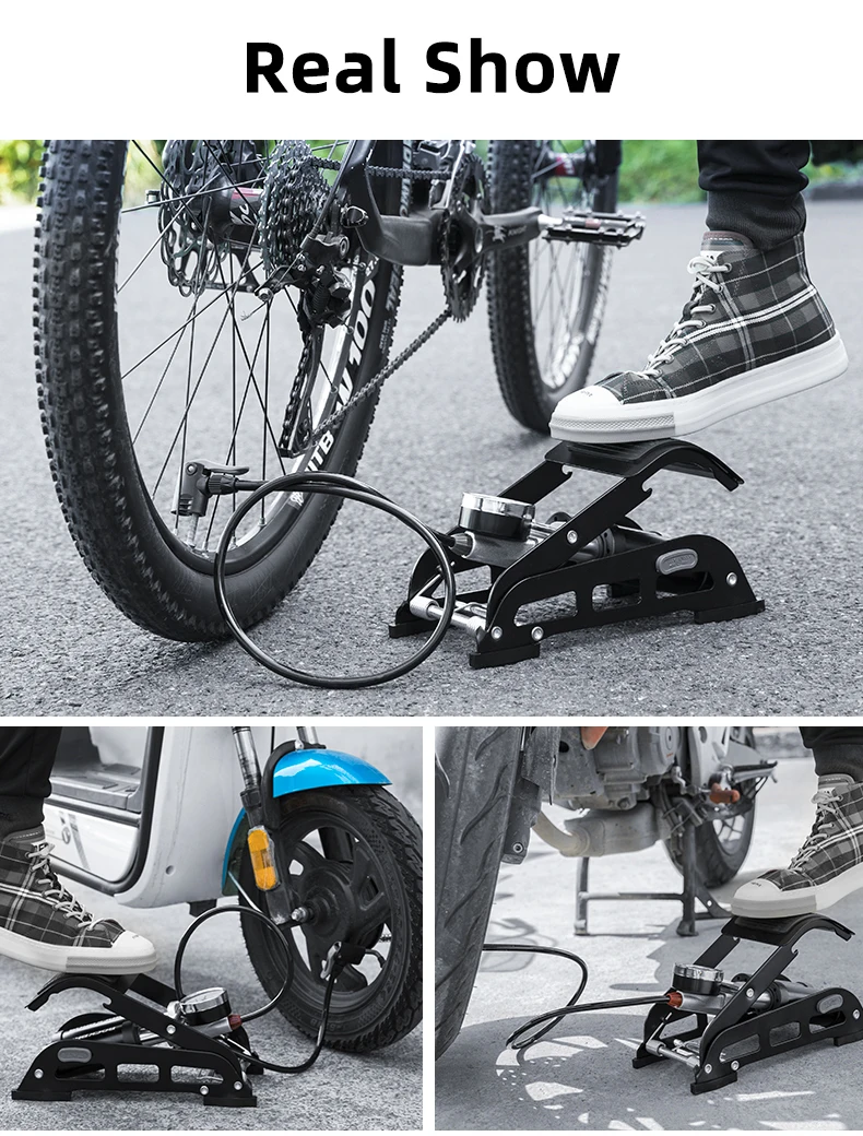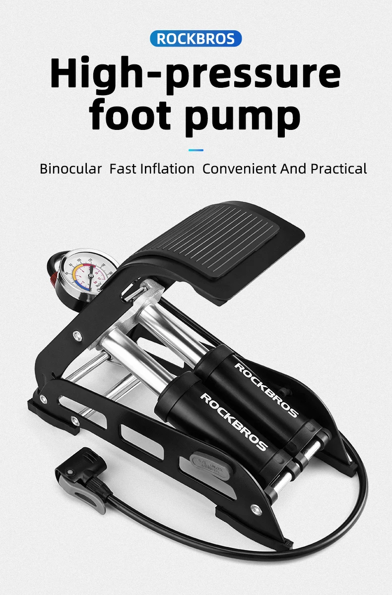 Бренд: ROCKBROS Вес: 1,5 кг/1,8 кг/2 кг Размер: 29,5*12*7,5 см Цвет: черный/синий Подходит для: велосипедов, мотоциклов, автомобилей, надувных игрушек и т. д. Характеристики: высокое давление, экономия труда, складной и портативный, прецизионный барометр