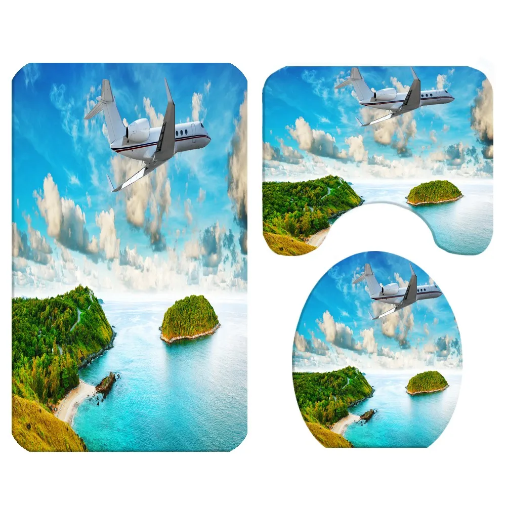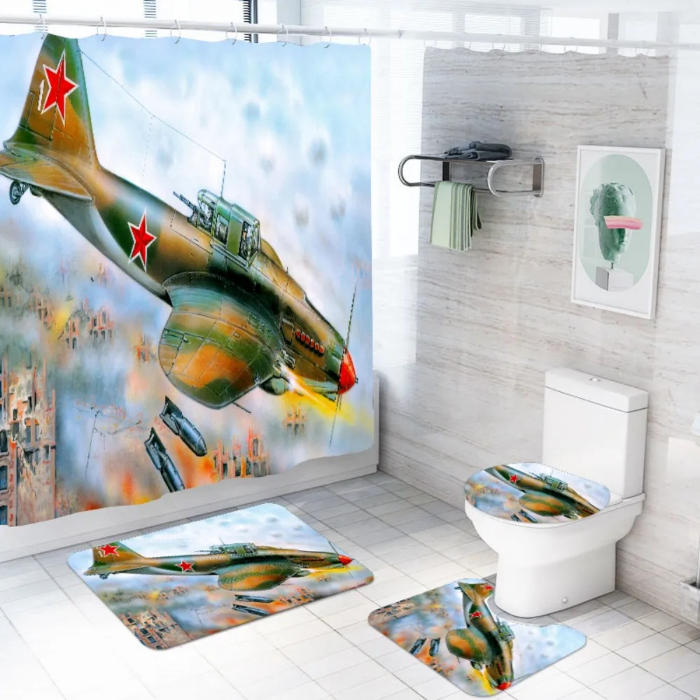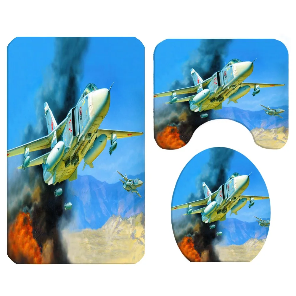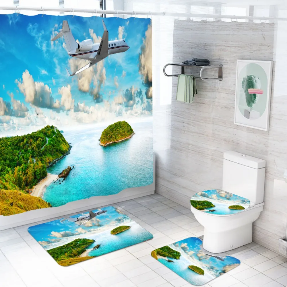 Летательный аппарат набивным рисунком Душ занавес ковер крышка Крышка для унитаза, коврик для ванной, комплект с рисунками снеговой бабы с крючками 3/4 шт