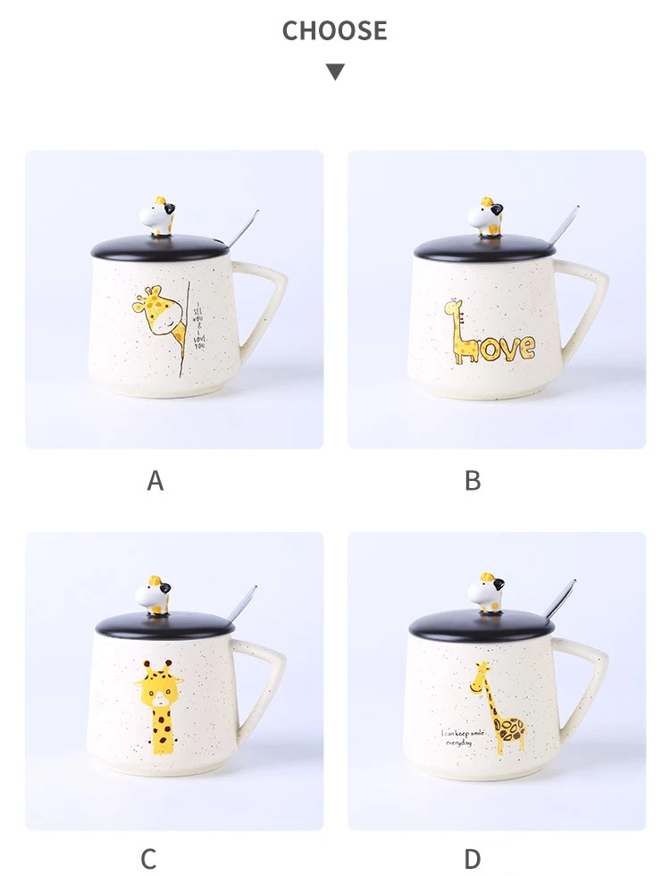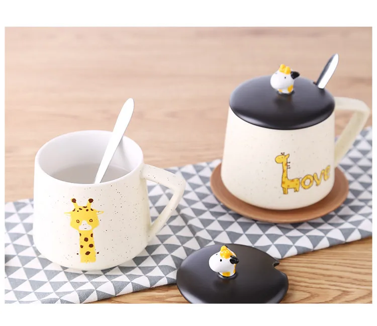 Креативная кружка деревянная крышка с ложкой мультяшный Жираф керамическая чашка для воды