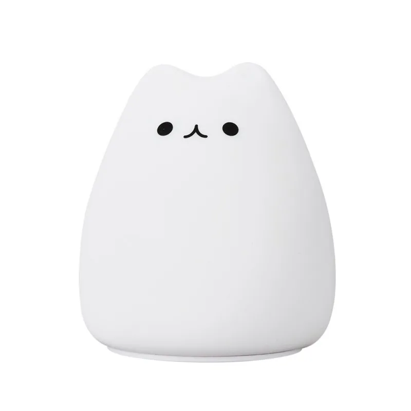 LED Night Light, Battery Powered Silicone Cute Cat Carton Nursery Lights with Warm White and 7-Color Breathing Modes for Kids Baby Children 2 NIGHT LIGHT MODES: Warm white light mode and 7-color breathing mode, just gently tap the soft silicone surface to change the modes. ADORABLE SMILING FACE: Lovely kitty cat smiling face that can take your mind off any problems when you see it. SAFE MATERIAL: The kitty night light cover is made by BPA-free washable ABS and silicone, innocuous, soft and harmless, which is safe for everyone including babies. PORTABLE: Compact size design and powered by battery make it portable for travel and storage. APPLICATIONS: Night light for kids, babies, children, girls and ladies, and it would be a great choice for bedroom. Switch description: press the bottom button light on; Press the light again to go out; After no operation for 1 hour, the light goes out Change of light: turn on warm yellow, take one shot, the light fades in three seconds with seven colors; Pat twice, pausing the color of the stroke; Beat the lights out twice [note] 3x AAA batteries not included Flaps off the lights and the product still works. If not used for a long time, please use the button to turn off the light to reduce the battery loss Package include: 1pc Night Light