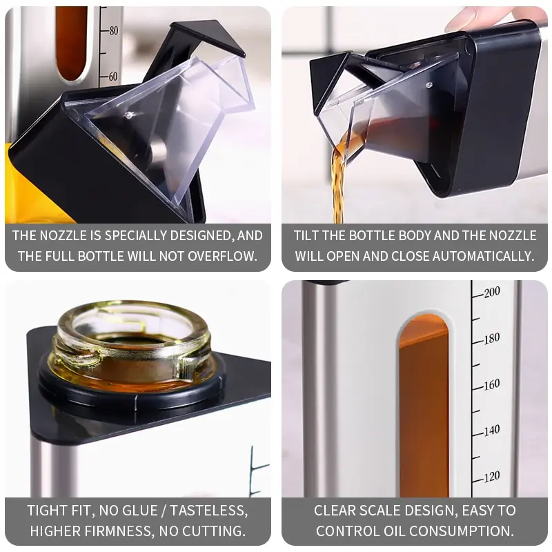 <Для приготовления пищи на кухне: герметичный масляный бутылочный носик, вы не будете иметь капли масла на руке после использования, отлично подходит для кухни, легко заливать салаты, пасты, бутерброды и многое другое