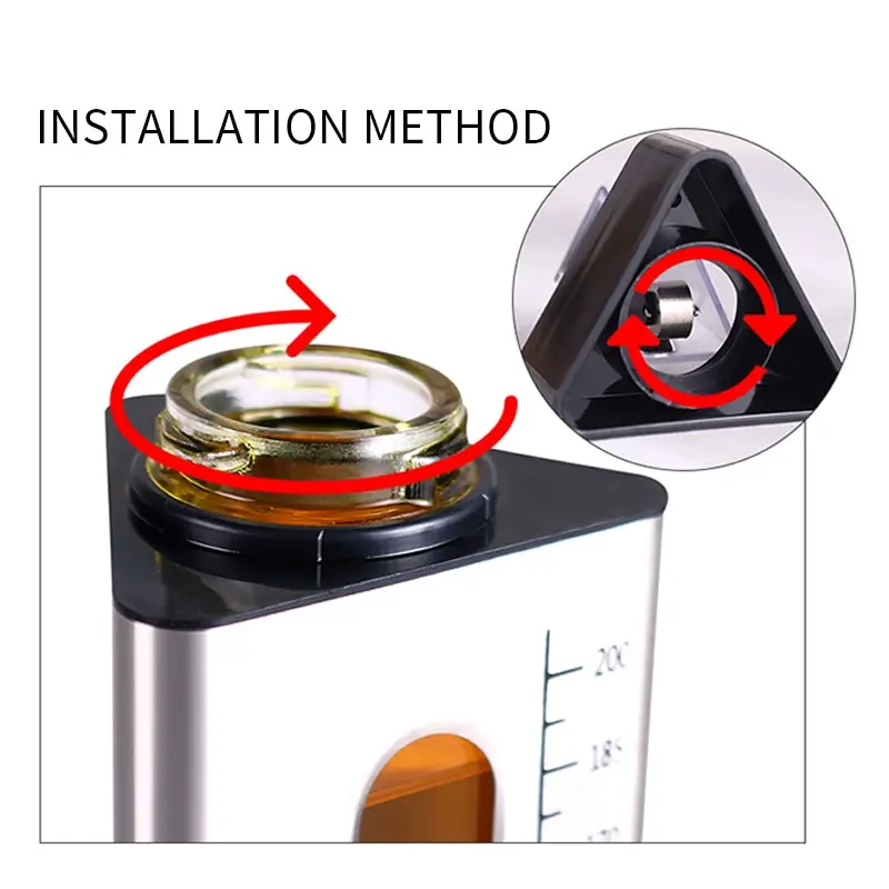 <Автоматическая конструкция крышки: крышка автоматически открывается при заливке масла и будет закрыта, когда она будет размещена вертикально на обеденном столе, простое управление одной рукой.