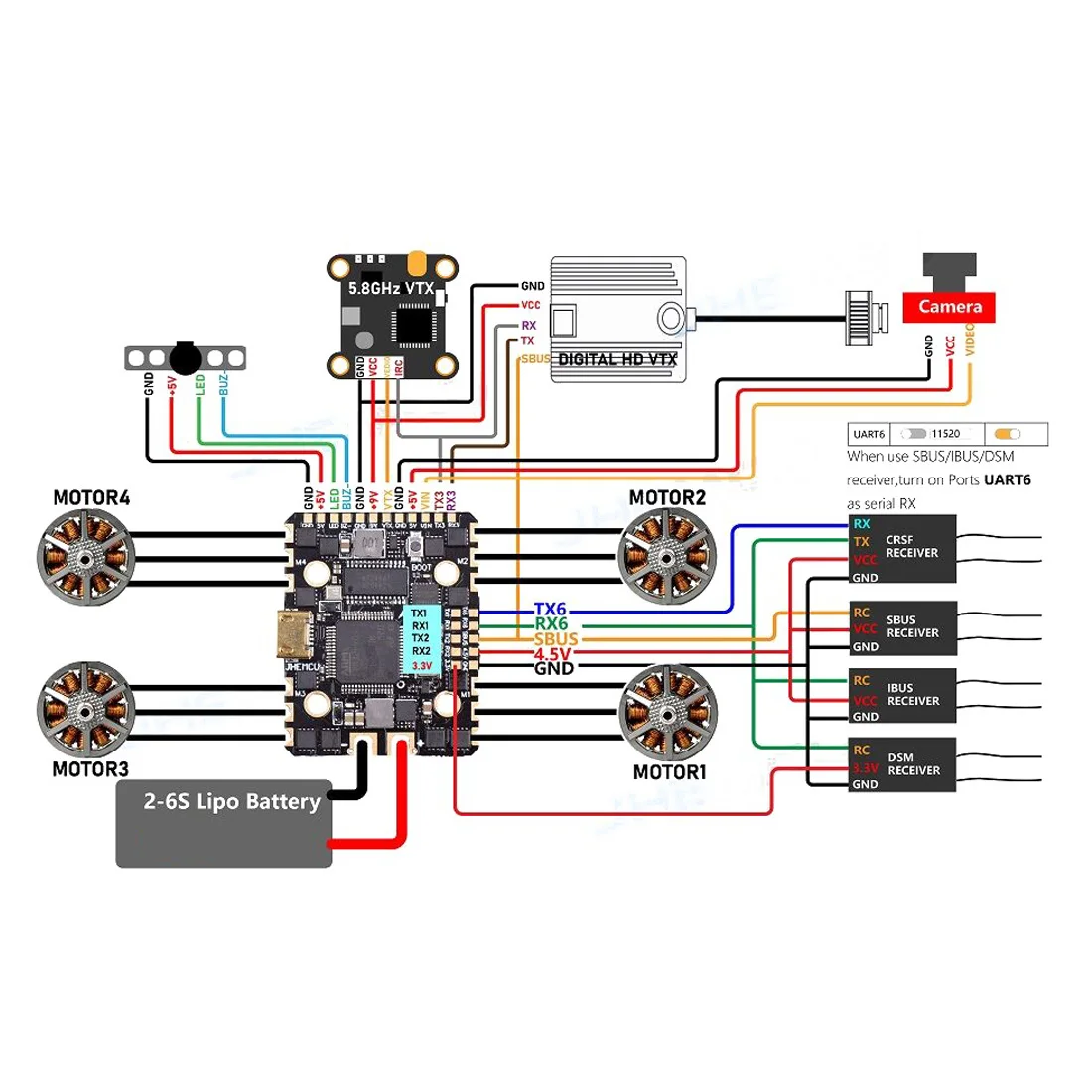 Приемник; SBUS,IBUS,DSM2,DSMX,PPM,TBS (UART6)