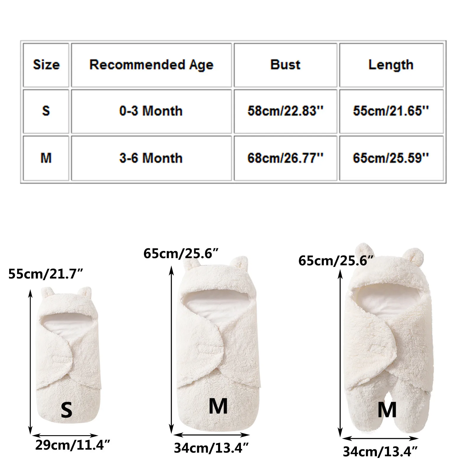| S | 0-3 месяца | 58 см/22,83 дюйма | 55 см/21,65 дюйма |