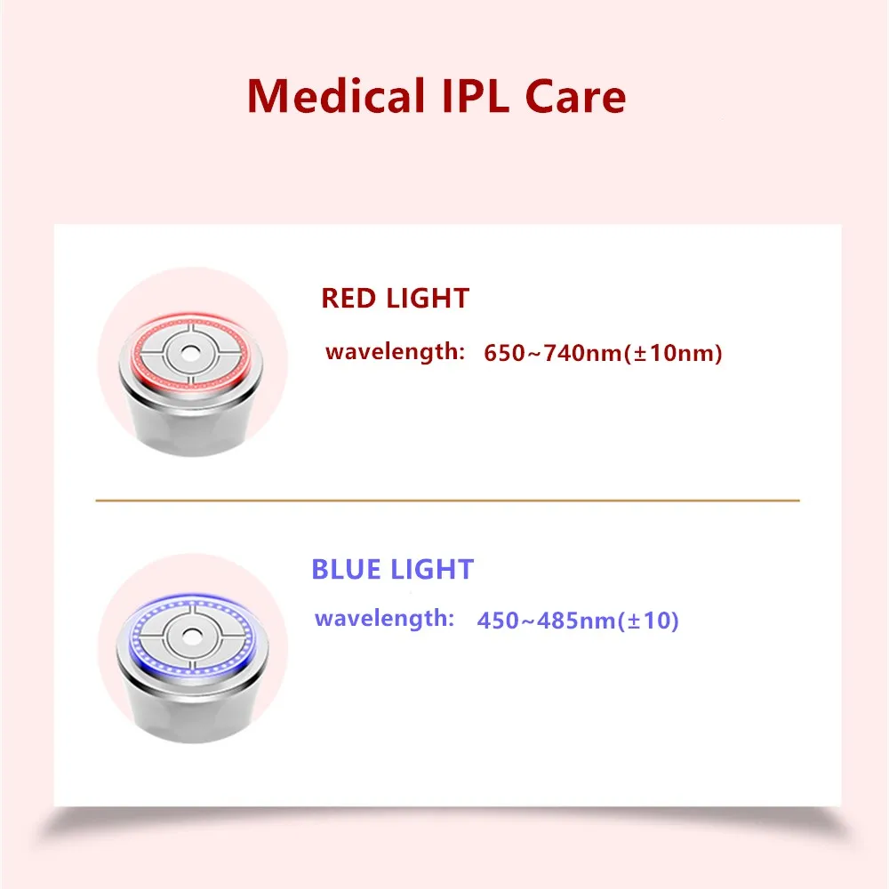 Светильник: тепло дермы, восстановление кожи, инскриз упругости. Синий светильник: Улучшение жирности кожи, угревой сыпи, тонуса кожи, текстуры и других проблем кожи.