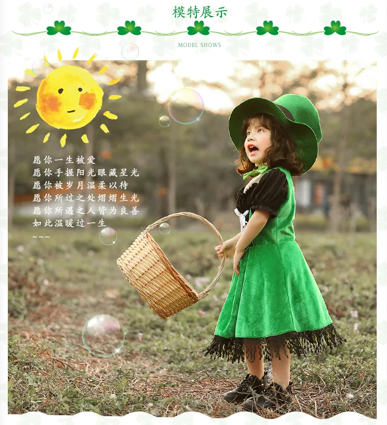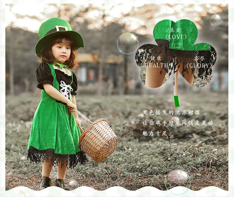 Товар: платье для девочек в европейском национальном стиле, костюм на День Св. Патрика, карликовый ирландский гоблин, зеленая шляпа, костюм для косплея на Хэллоуин