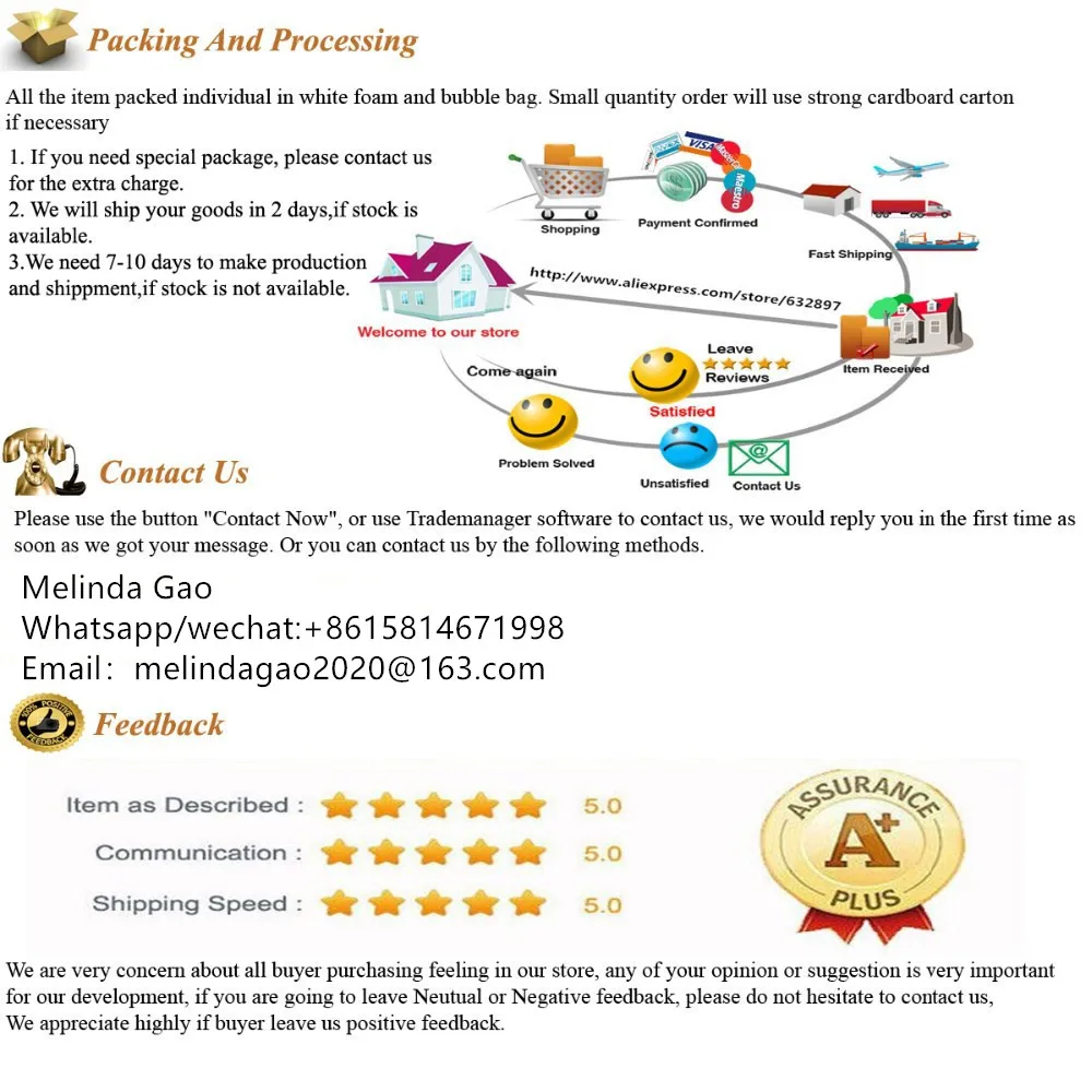 All the item packed individually in white foam,poly bag and inner box bubble. Small quantity order will use strong cardboard carton if necessary.