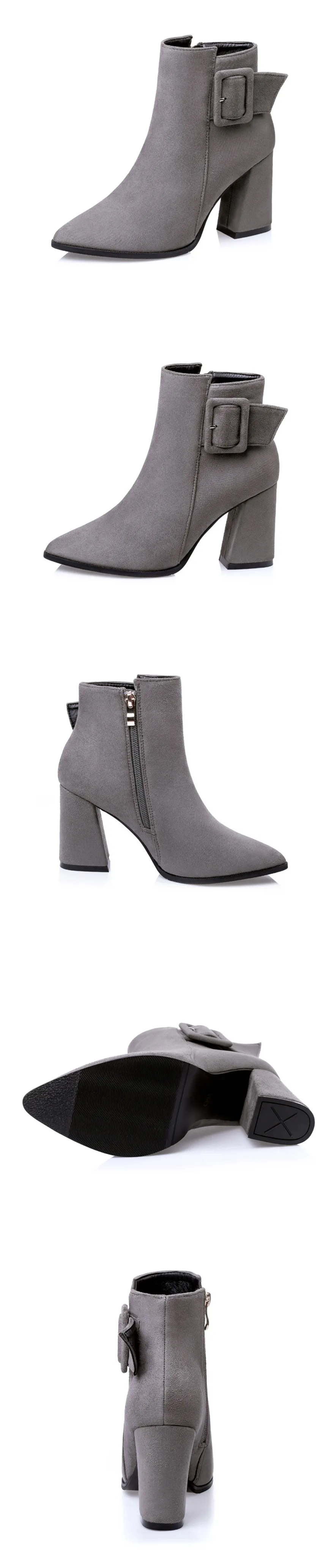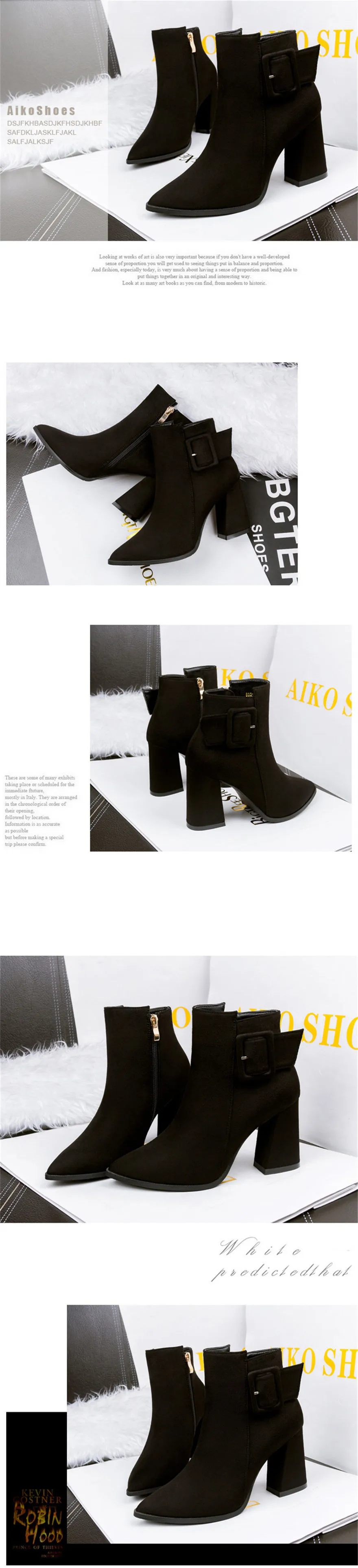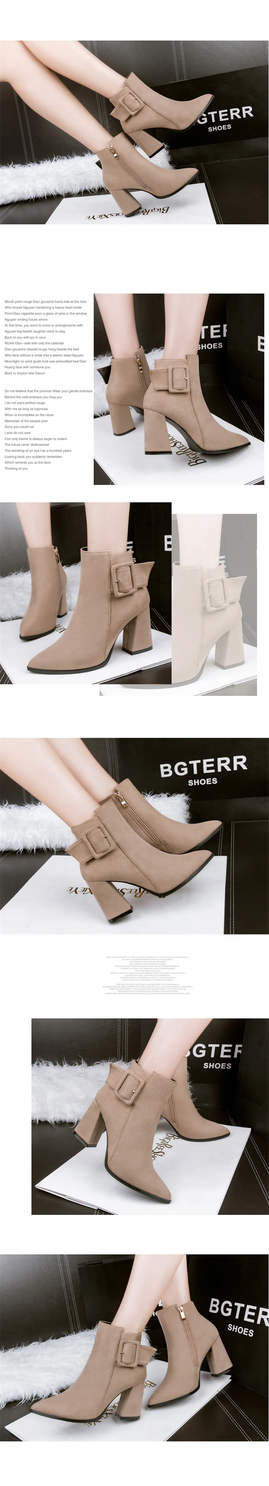 Женские ботильоны в стиле ретро с ремешком и пряжкой; Осенняя однотонная женская рабочая обувь из флока на Высоком толстом каблуке; Женские Ботинки Martin на платформе с острым носком