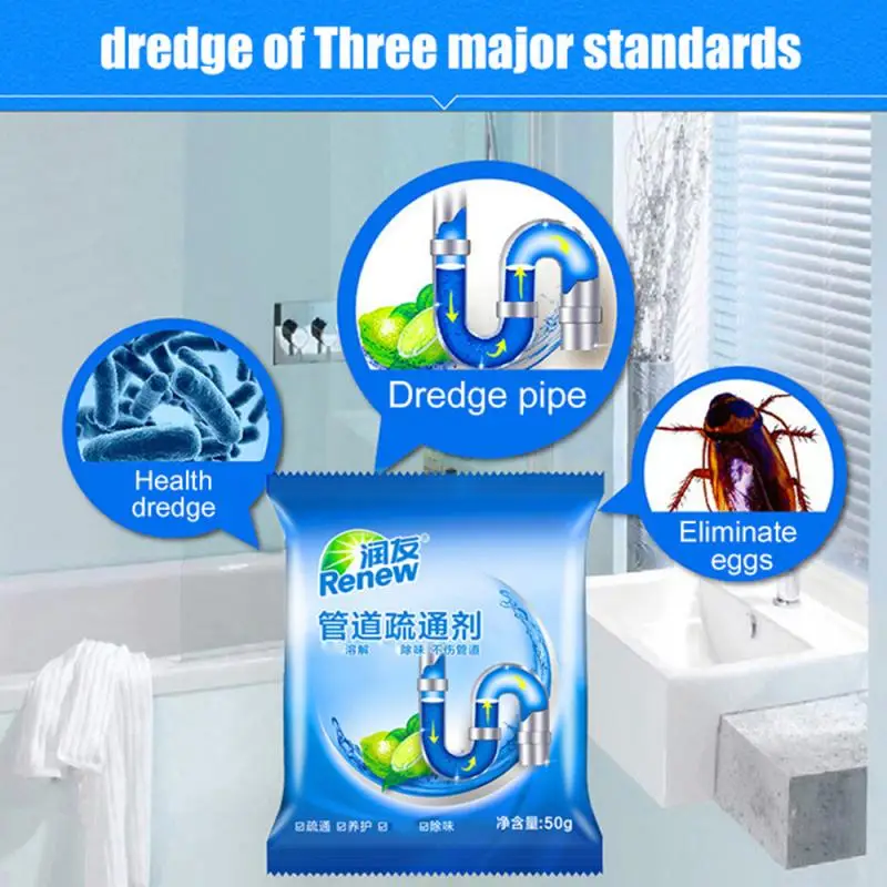 50 г/пакет, мощная мойка для слива, очистка труб, дноуглубительное средство, кухонный туалет и канализация, блокировка, очистка, дезодорант, драга