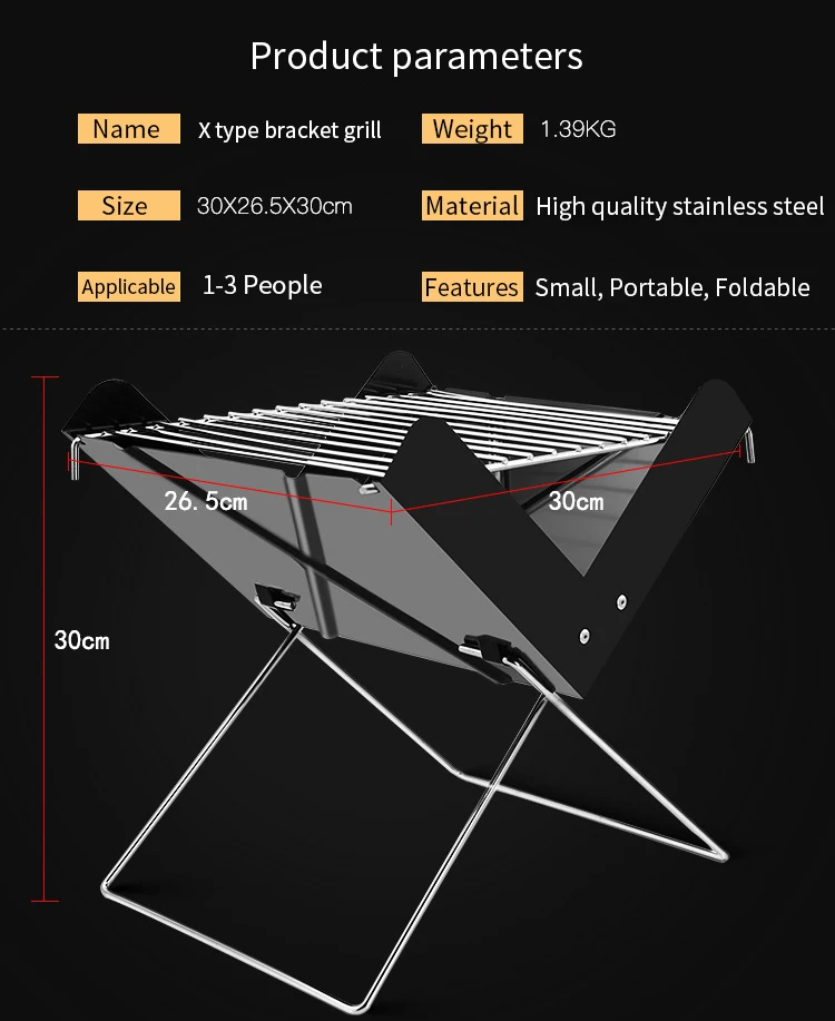Гриль для барбекю, портативный складной гриль для барбекю, угольный гриль, уличный небольшой антипригарный барбекю из проволоки X-образной формы, аксессуары для барбекю