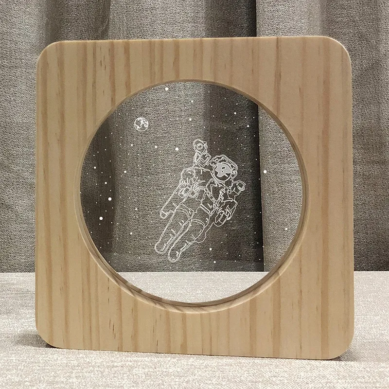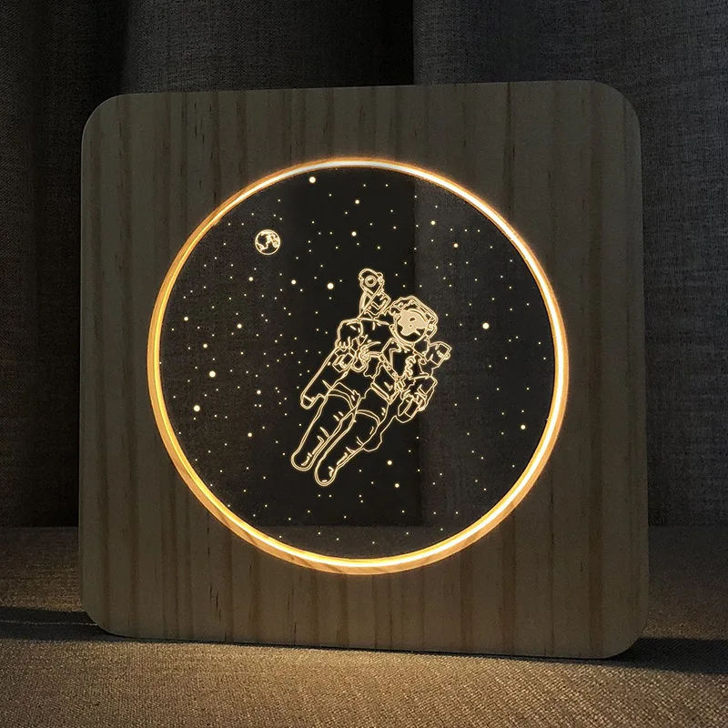 Название: креативный деревянный ночник 3D Материал: сосна Размер продукта: 190x190x30 мм Цвет продукта: теплый светильник Режим переключения: кнопка Характеристики Товара: 5 в 1 а 2,5 Вт Способ питания: USB-кабель (входит в комплект) Вес продукта: 0,55 кг Одна посылка: 24x20x3,8 см