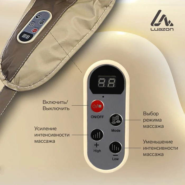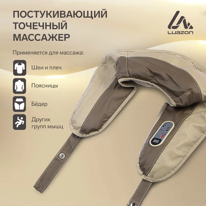 Наплечный массажёр «LuazON» ориентирован на снятие излишнего мышечного напряжения в зоне спины и шеи, на стимулирование кровообращения и снятие усталости. Удобная фиксация обеспечивает комфортное расположение прибора на массируемом участке. Для более эффективного и комфортного использования массажёр имеет несколько режимов работы и пульт управления. ХарактеристикиПрименяется для массажа шеи и спины Пульт в комплектеРаботает от сети Напряжение: 220 ВГарантия: 6 месяцев.Снимайте напряжение в мышцах шеи с массажёра «LuazON»!