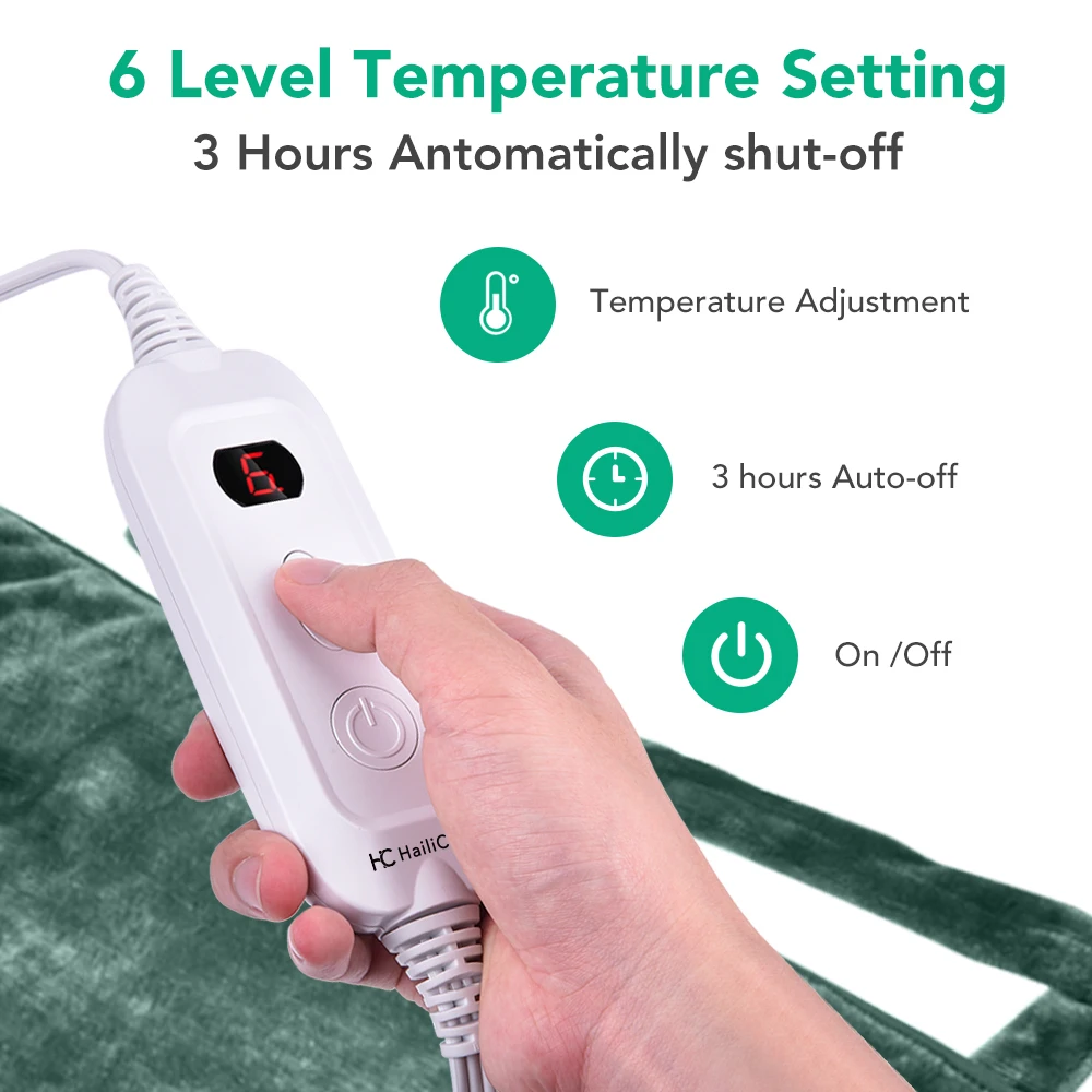 2. Нагрев накидки осуществляется 3 регуляторами температуры за 3 секунды. Вы можете отрегулировать уровень температуры в соответствии с вашими потребностями в обогреве.