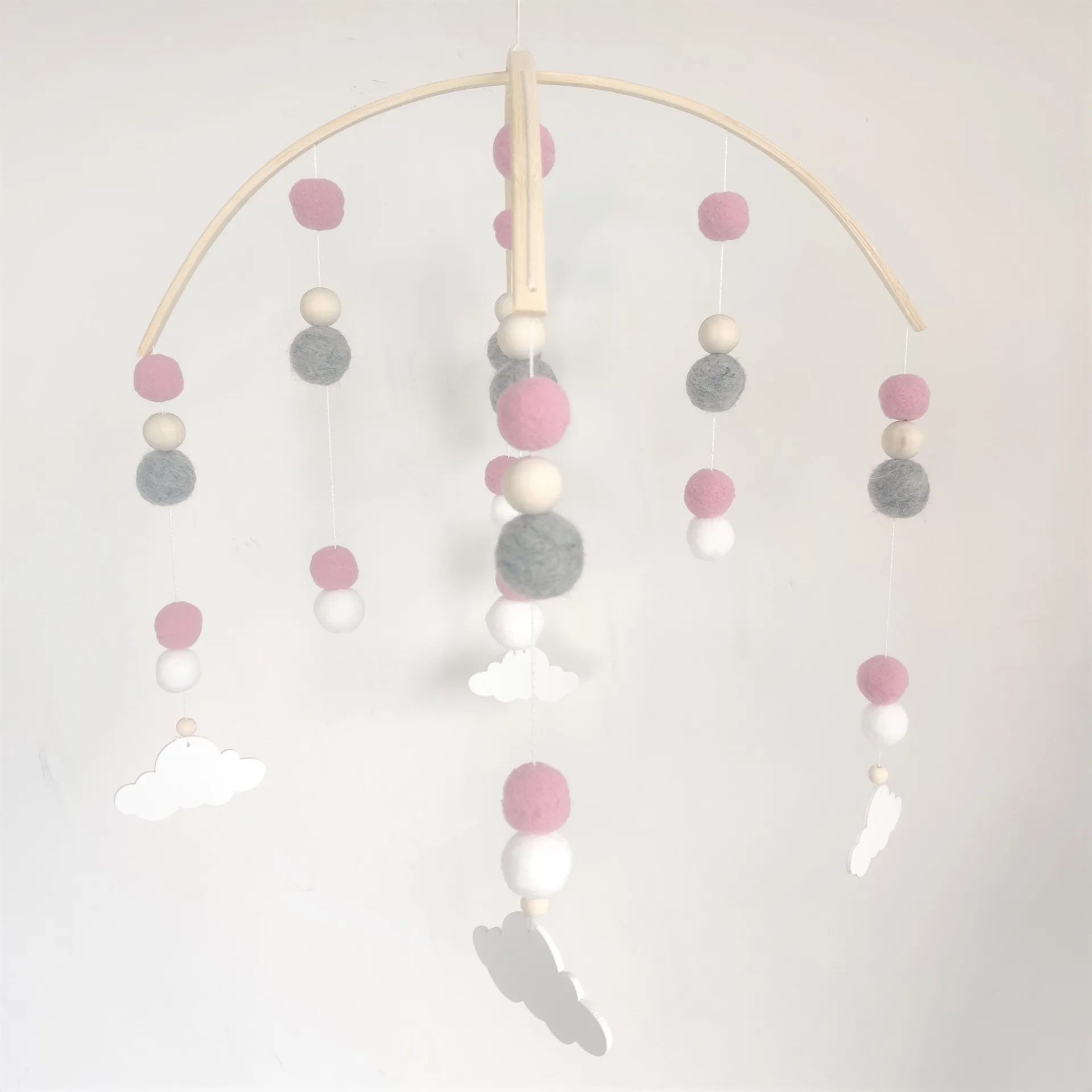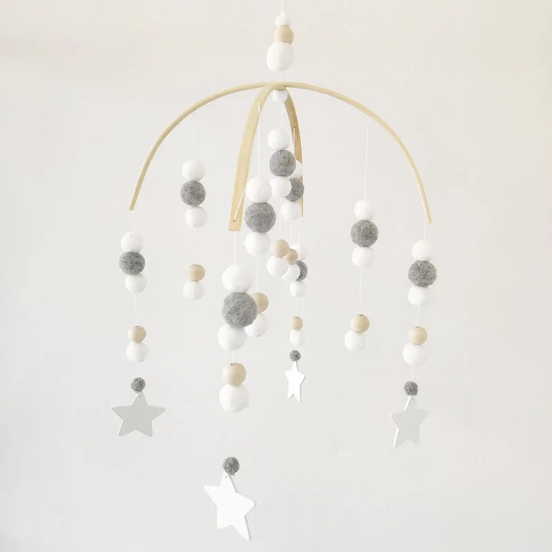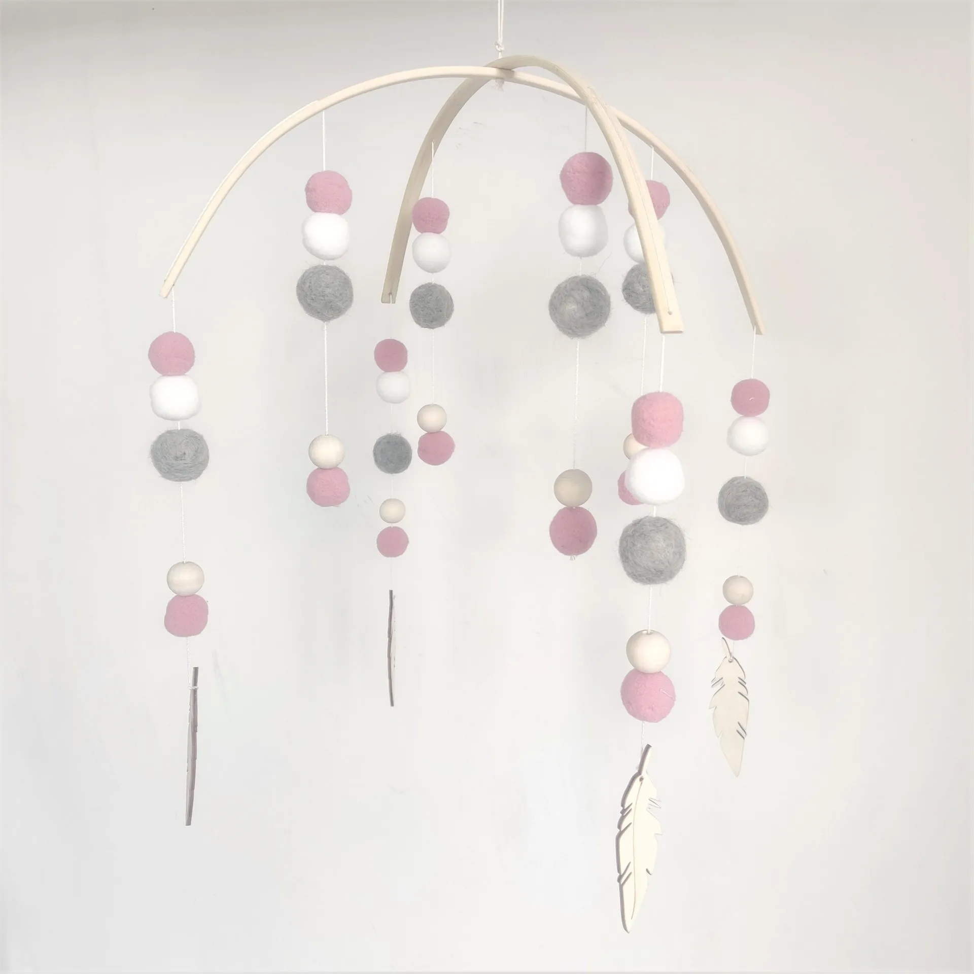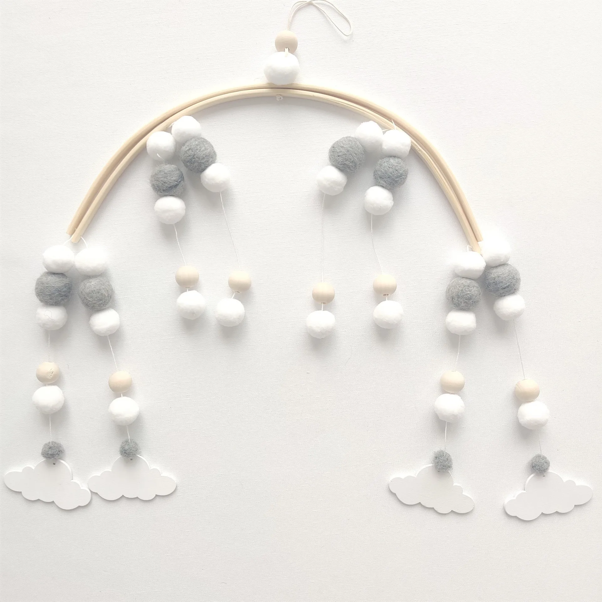 Скандинавские фетровые шарики ручной работы, подвесные украшения для детской кровати, деревянные поделки для детской комнаты, декоративные колокольчики