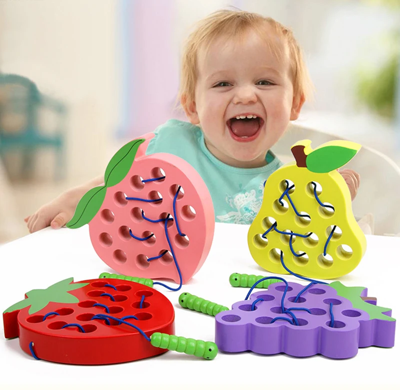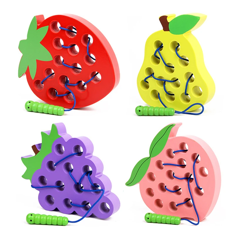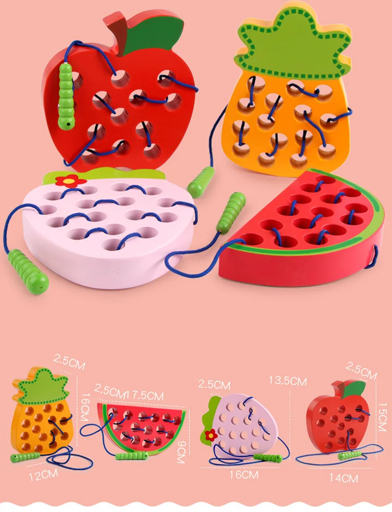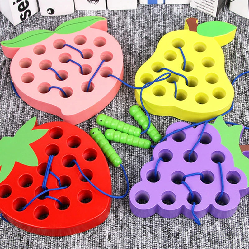 Монтессори детские развивающие игрушки деревянные игрушки червь едят фрукты Яблоко Груша клубника забавные деревянные головоломки игрушки для детей Подарки