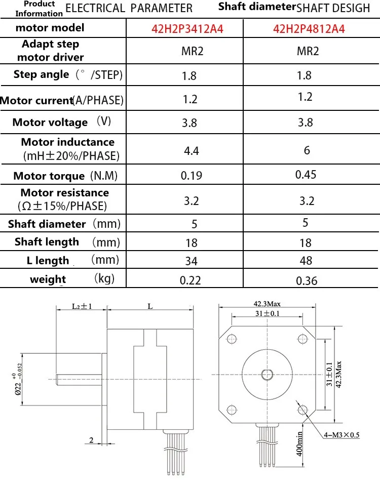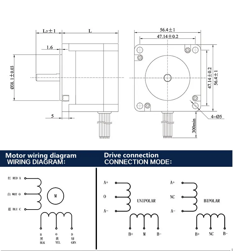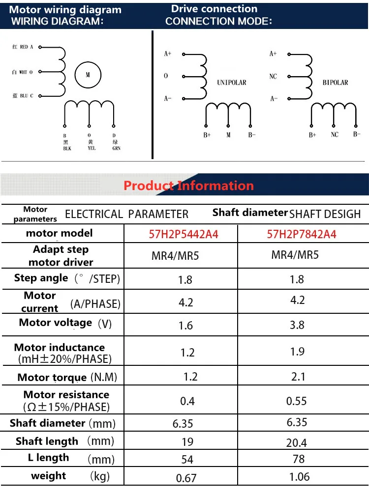 2-фазный 4-проводной шаговый электродвигатель сопротивление маленького