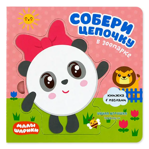 Книга Собери цепочку Малышарики В зоопаркепредлагает маленькому исследователю отправиться в удивительное приключение с персонажами любимого мультипликационного сериала. Позвольте непоседе вынуть из книжки картонные картинки-пазлы и сочинить собственную сказку!