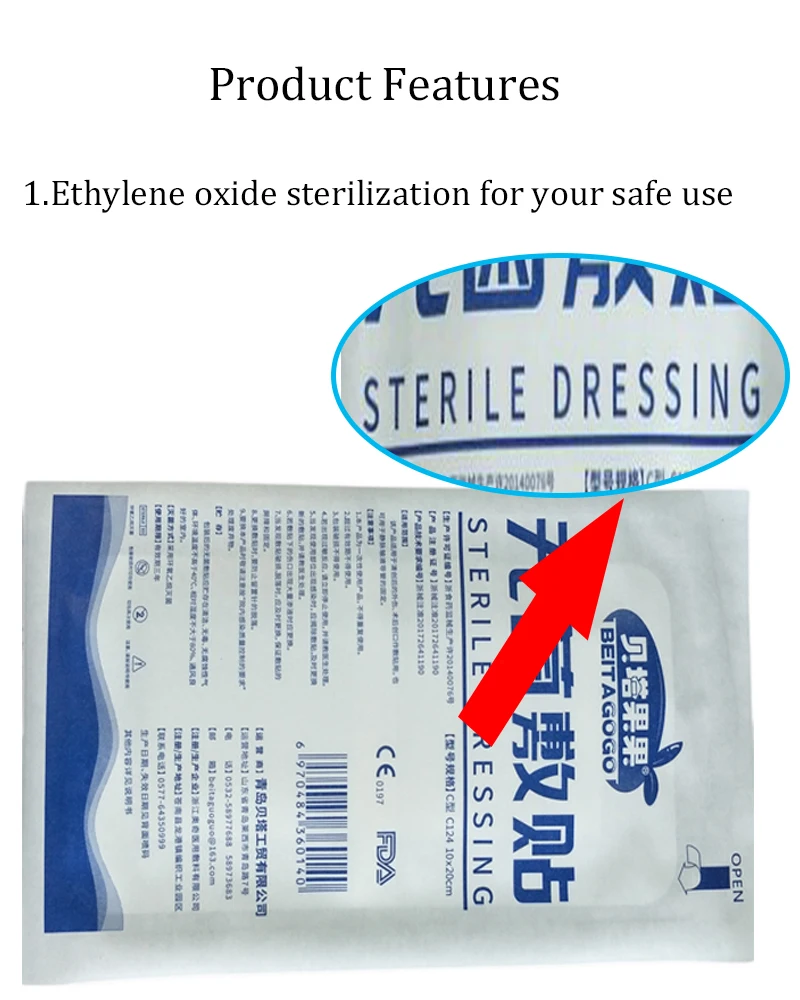 [Материал]: состоит из трех частей: базового материала (листовой ленты), абсорбирующей подкладки и бумаги для выпуска. [Область применения]: этот продукт в основном подходит для покрытия РАН и разрезов при хирургических операций.