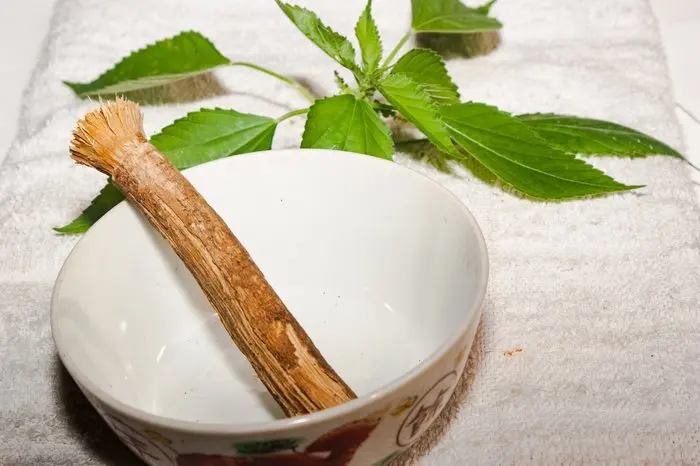 В мисвак (miswaak, сивак, sewak, арабский: سواك или مسواك)-это профессиональная чистка зубов веточка из харитаки дерево (известный как arāk, أراك на арабском языке). Это 1 известных использовались более 7000 лет назад.[1] свойства miswak были описаны таким образом: "помимо их антибактериальной деятельности, которая может помочь контролировать образование и активность зубного налета, их можно эффективно использовать как естественную для чистки зубных щеток. Такие палочки являются эффективными, недорогими, распространенными, доступны и содержат множество медицинских свойств. «[2] Это также занимает видное место в мусульманской гигиенической практике.