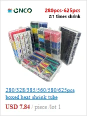 625 шт черный в коробке термоусадочная трубка 2:1 Электронный Набор DIY, изолированный Полиолефиновый обшитый термоусадочный трубопровод кабели и кабели трубки