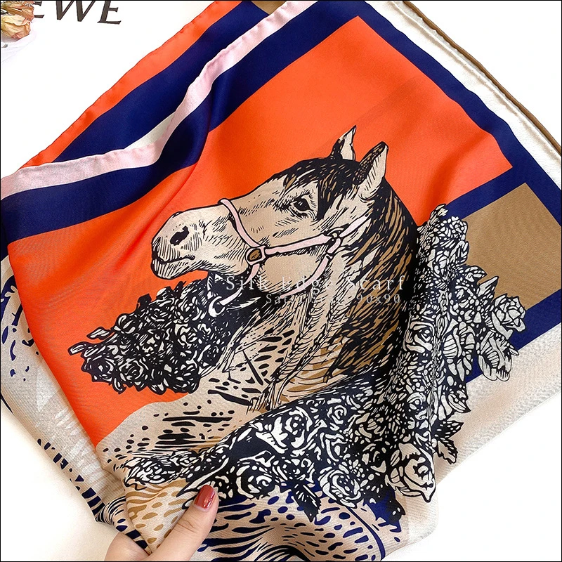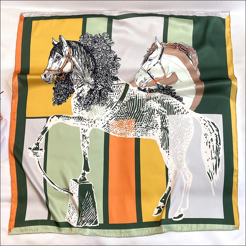 Женские атласные шарфы, шелковый шарф, ручная работа, края 90 см, шелковый шарф, дизайнерские атласные шарфы, 90 лошадиных принтов, банданы