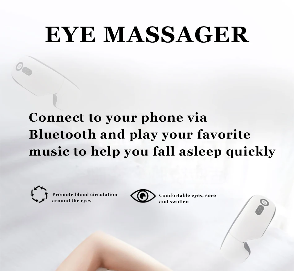 Массажер для глаз принимает умное давление воздуха, регулярно массируется и сжимается на важных точках глаз, чтобы очистить нервную систему и снять усталость. Он оказывает большое влияние на уменьшение тонких линий, выцветание темного круга и восстанавливает эластичность кожи. С помощью музыкального гида Вы сможете восстановить энергию примерно за 15 минут воспроизведения музыки.
