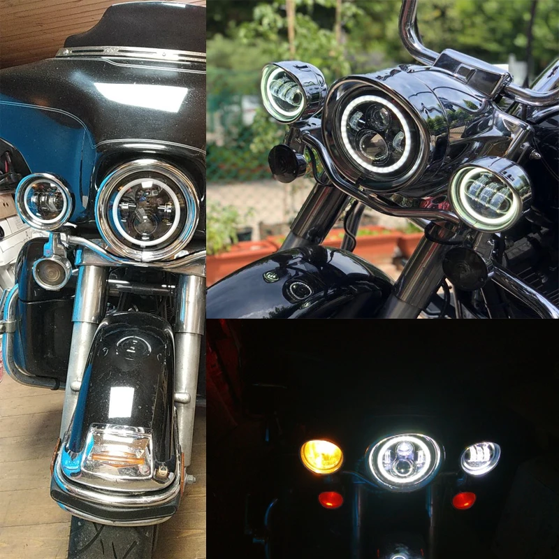 7 дюймовый светодиодный фар, 4,5 дюйма Halo противотуманные фары, переходное кольцо для Harley Touring Electra Road King Street Glide