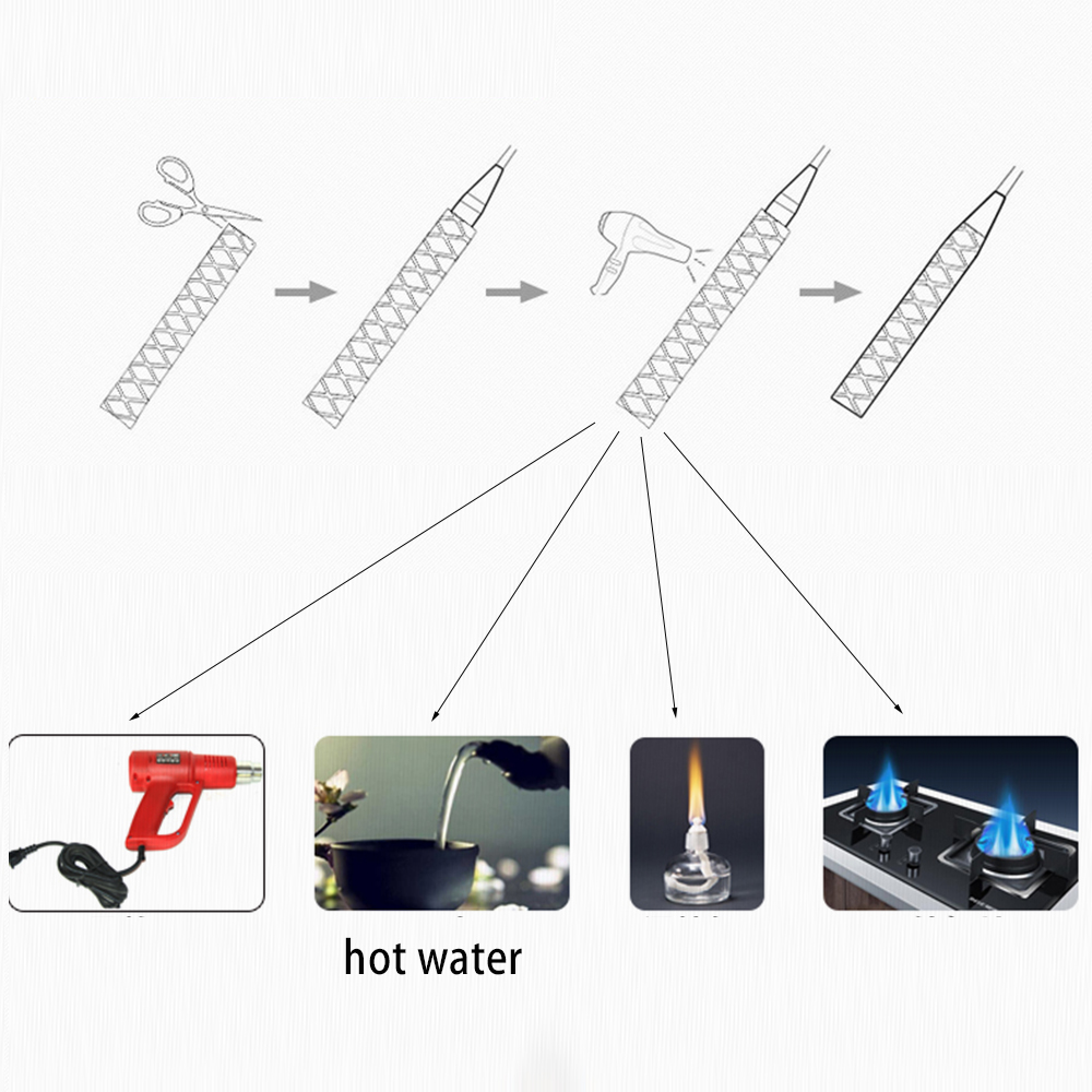 There are many aplication method. 1.High Power Hot Air Gun 2. Boiling water contract 3. Gas stove(pay attention not to set fire, should be a certain distance from the top of the fire, avoid burn-ing) 4. Alcohol burner