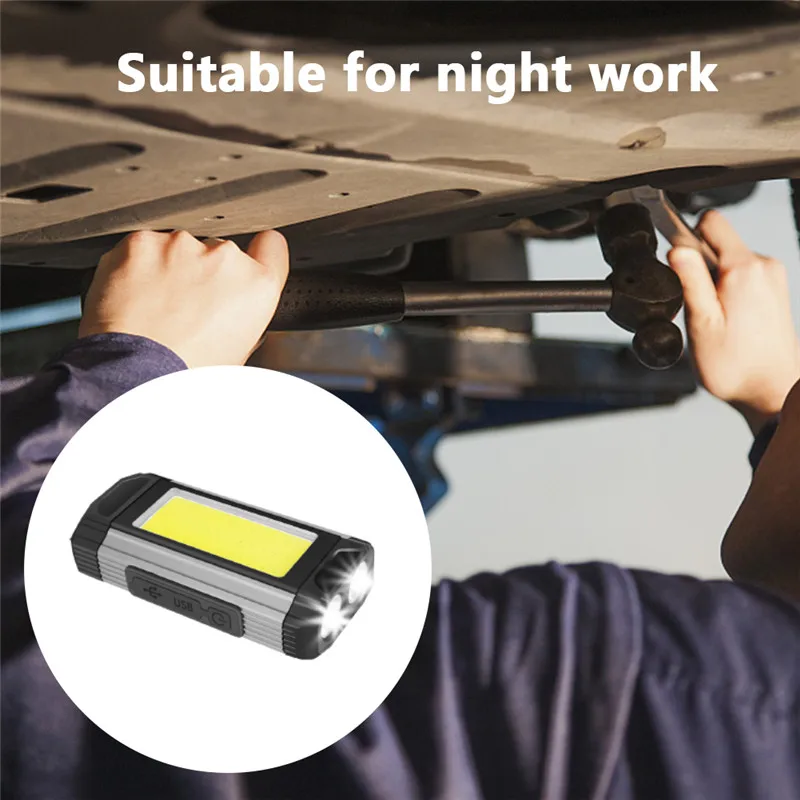 1. Высококачественный и водонепроницаемый корпус из АБС-пластика и алюминиевого сплава обеспечивает чрезвычайно высокую прочность. Светильник, вес и портативность, Идеальный открытый/внутренний рабочий светильник в работе. 2. Высокая яркость. Состоит из супер яркого XPE/COB светильник, 5 режимов светильник Управляется 1 кнопкой, переключатель свободно, легко работать. 3. Светильник ing режимы: яркий белый светильник (XPE); Сильный белый светильник (COB); Слабый белый светильник (COB); Красный светильник (COB); Красная вспышка (COB) 4. Крюк и магнитный дизайн, можно прикрепить к любой металлической поверхности или повесить. Удобно использовать во время работы. 5. Встроенный литиевый аккумулятор емкостью 2200 мАч, usb-зарядка, удобно брать. Может питаться от powerbank или подключаться к любому адаптеру для зарядки. С выходным портом также может использоваться как банк питания. 6. Широко используется: кемпинг, туризм, рыбалка, барбекю, ремонт автомобилей, грузовик, магазин, исследования и многое другое.