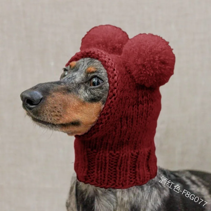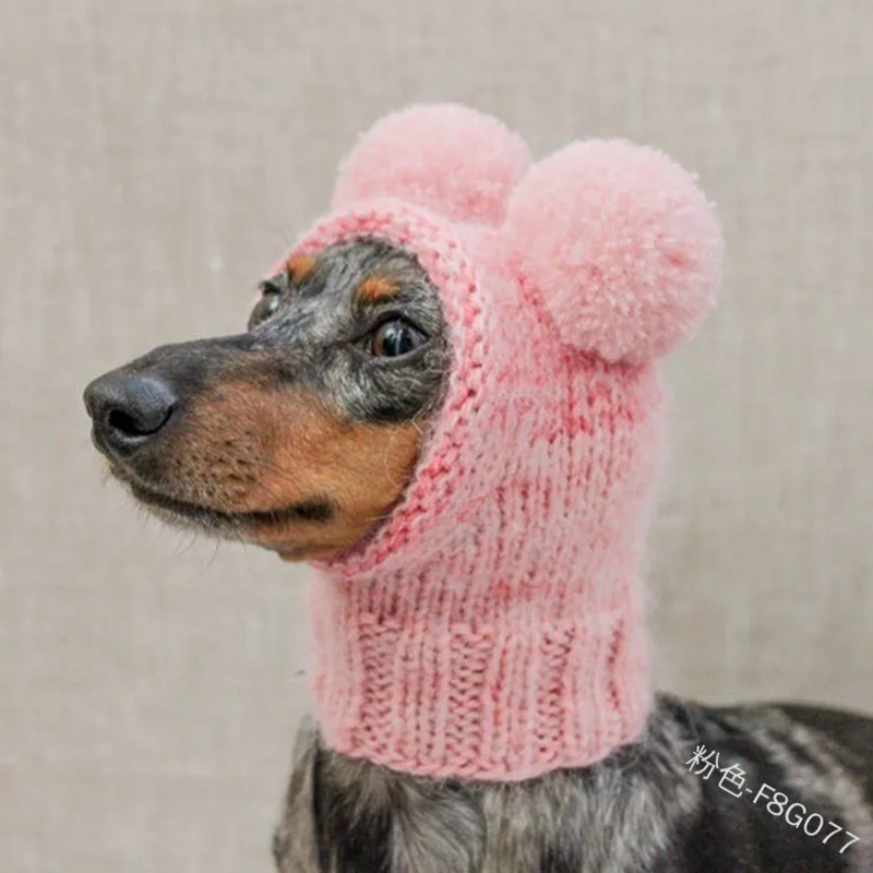 Шапка для собак в европейском и американском стиле шляпа для животных однотонная разноцветная шапка с плюшевыми шариками и ушками милый головной убор для собаки вязаная шапка для домашних животных из акрилового волокна