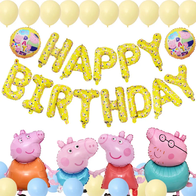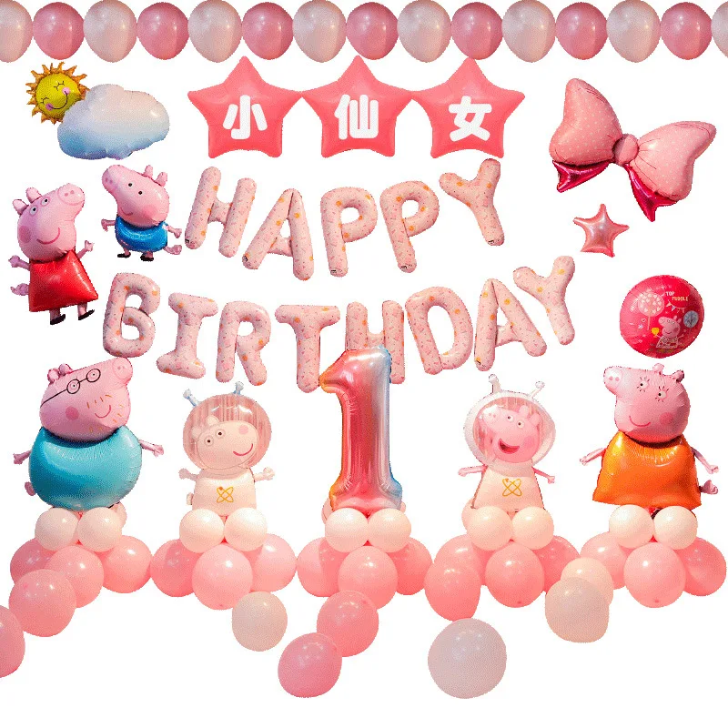 Вечерние украшения с изображением Свинки Пеппы из мультфильма аниме, вставка для торта с воздушным шаром Пеппы Джордж, с днем рождения, баннеры, вечерние украшения для детей на день рождения