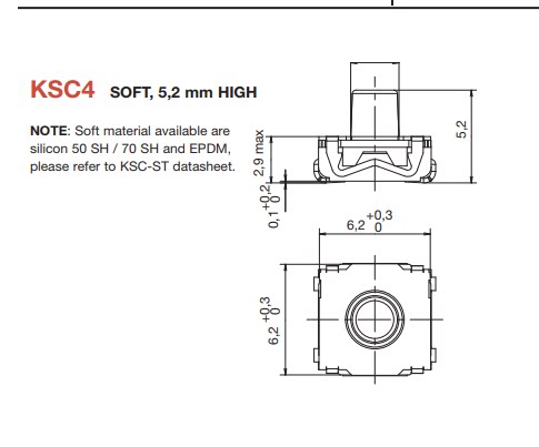 Оригинальный Французский C & k KSC441G70SHLFS водонепроницаемый, пыленепроницаемый и пыленепроницаемый силиконовый тактовый переключатель 6*6*5 SMD 4-контактная Кнопка тактильные кнопки микродвижения Force 4N одна пластина 1000 шт. длительный срок службы, устойчивость к высоким и низким температурам есть подробные данные и чертежи размеров