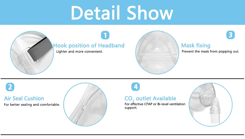 Без поддержки лба, более открытое видение, Двойная силиконовая накладка для большего комфорта, улучшенная герметичность воздуха и более комфортный экспериментирование 22 мм Стандартный локоть с CO2-let с антиудушающим клапаном