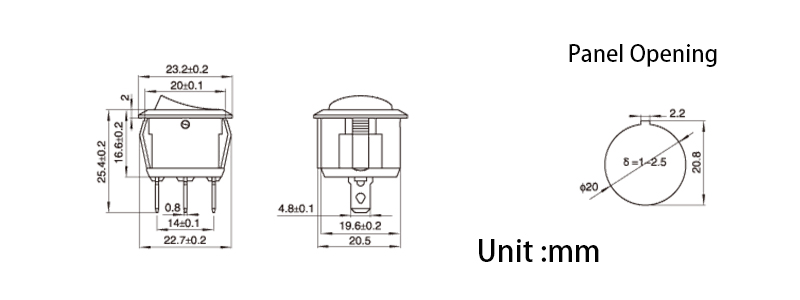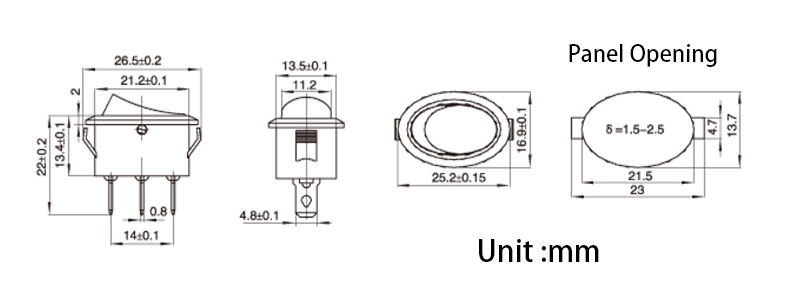 Размер отверстия панели: 22*14 мм