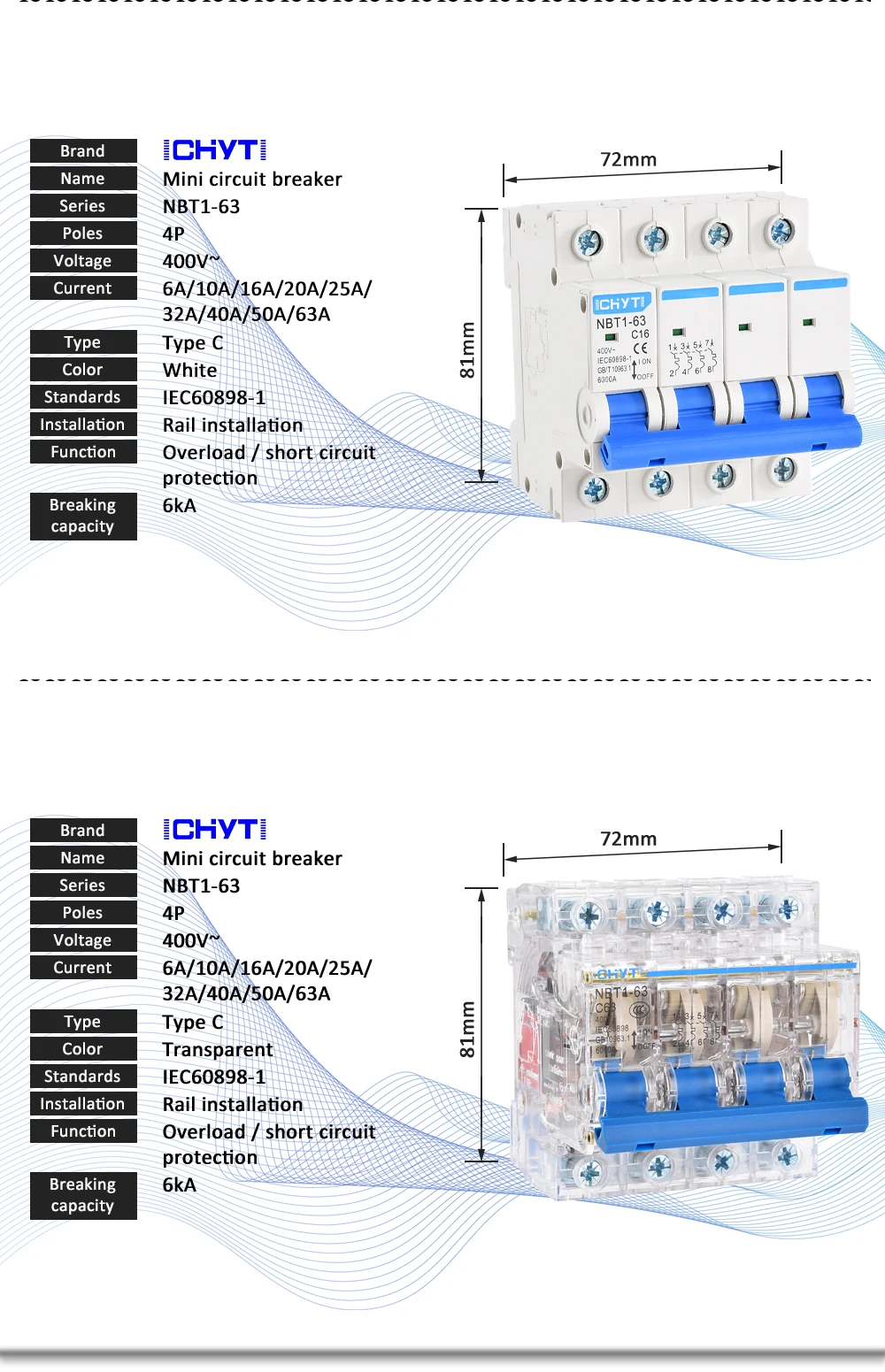 NBT1-63 имеют защитную функцию в качестве перегрузки, и используются в системе распределения освещения в промышленной торговле и жилых помещениях, а также защищают Фракционные электродвигатели. И у них также есть много достоинств Высокого защитного класса (до IP20), высокая разрывная способность, надежная чувствительная, удобная для действий, многополюсная сборка, долгий срок службы и т. Д. В основном адаптированы к цепи переменного тока 50 Гц, 250 В в одиночном полюсе, 415 в двойном, трех, четырех полюсов для защиты от перегрузки и короткого замыкания. В то время, они также используются при включении или выключении электрического аппарата и цепи освещения в нормальных условиях.