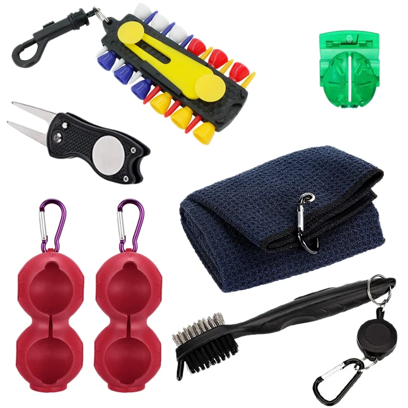 Аксессуары для гольфа 6 в 1 Набор-полотенце, шариковый держатель, щетка для гольфа, инструмент для ремонта Divot, шариковый трафарет, держатель тройника, маркеры
