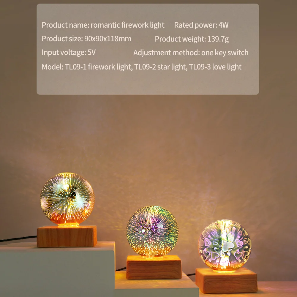 D2 светодиодный 3D Фейерверк Ночной светильник красочная атмосфера Настольная лампа подвесной светильник стеклянный шар для украшения дома звездное небо ночной Светильник