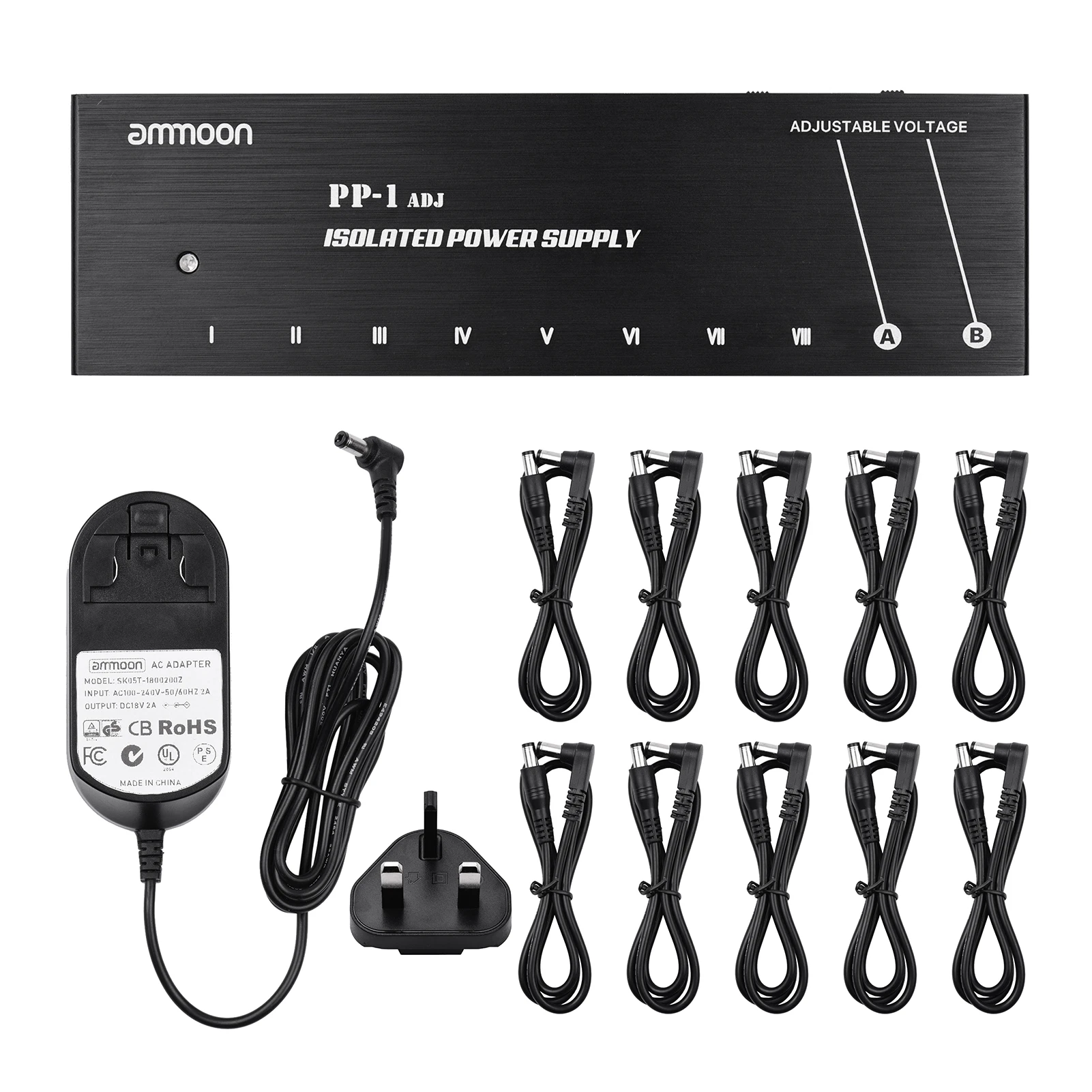 Стабильные выходы питания 9 в:Один 9V 1A (макс.) Выходная мощность с низким уровнем цифровой измеритель мощности Гитары усилитель; Семь 9V 500mA (каждый макс.) выходной мощности для большинства цифровых педали эффектов.