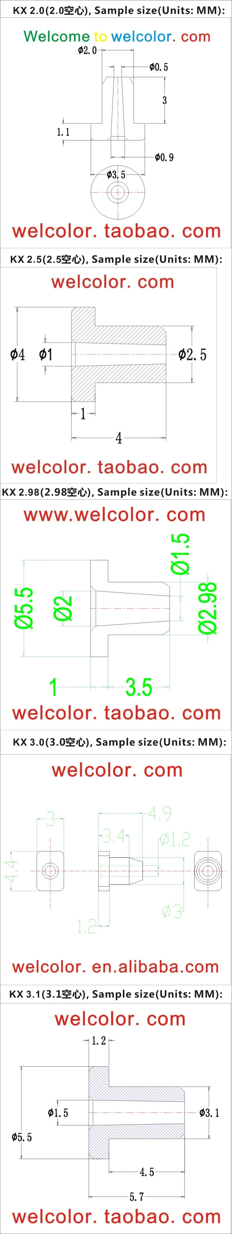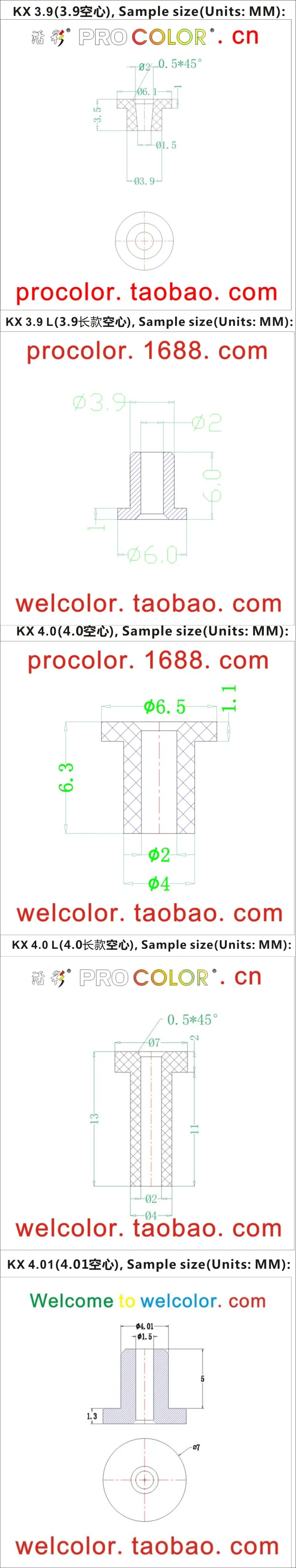 Спецификации пятна доступны: 3 3,9 4 4,2 5 5,5 6 7 7,3 7,5...Мм,
